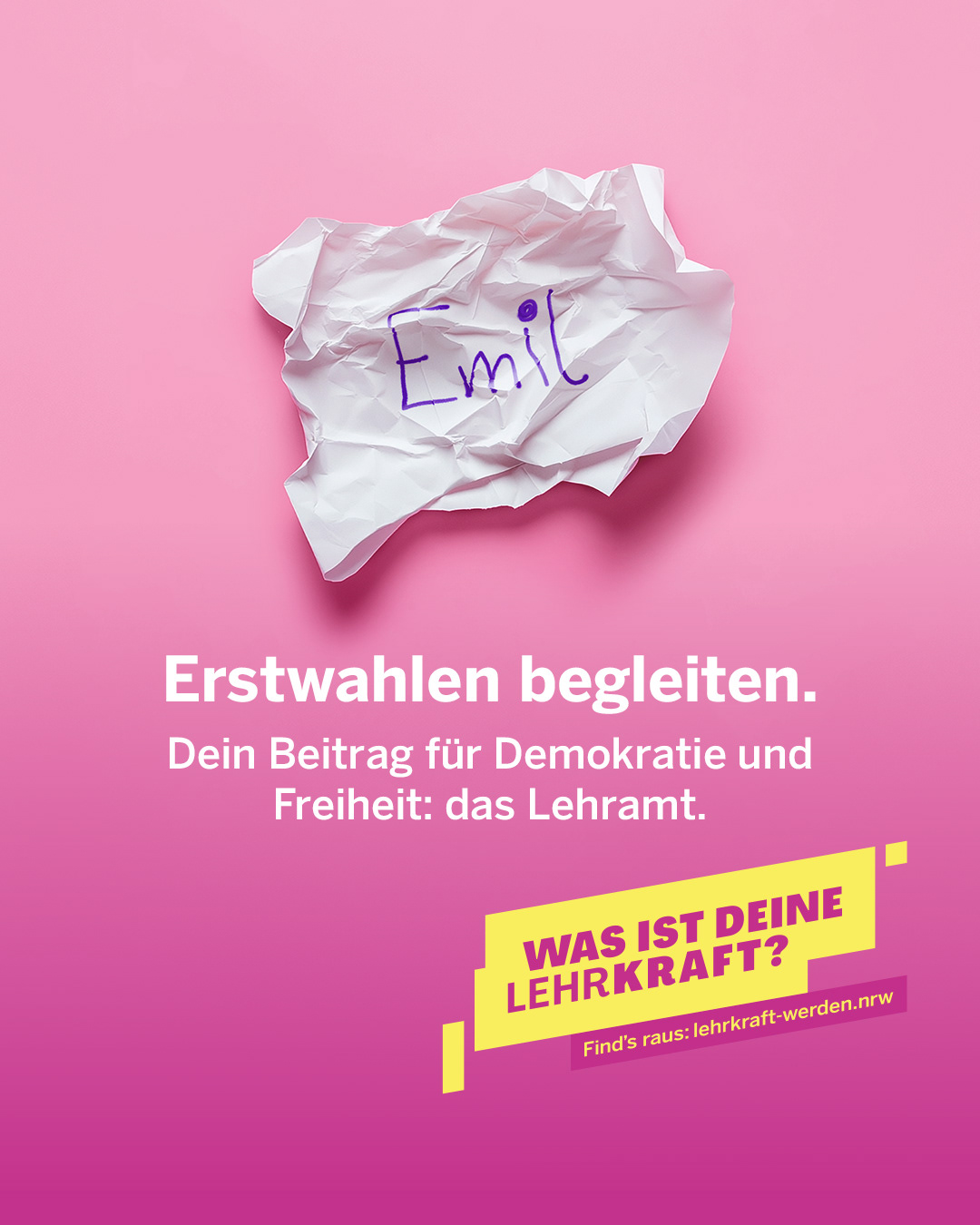Um die Wichtigkeit von Lehrkräften bei der Vermittlung zum Thema Demokratie zu unterstreichen, wurde die Kampagne entwickelt. Sie zeigt in einfachen und schnellen Beispielen, wie das Thema Demokratie in der Schule gelebt wird und ein natürlicher Teil des Schulalltags ist.
